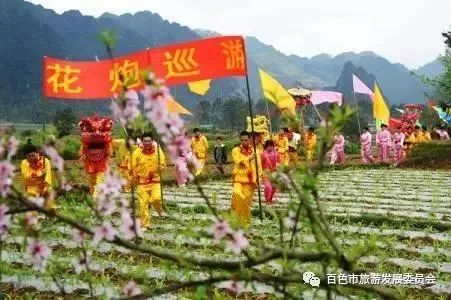 7:花炮节是流传在靖西一些村镇的民间习俗,“抢花炮”是群众的一种酬神祭祀活动,花炮节的进行程序大致为“迎炮”、“八宝出游”、“点炮”、“抢花炮”。