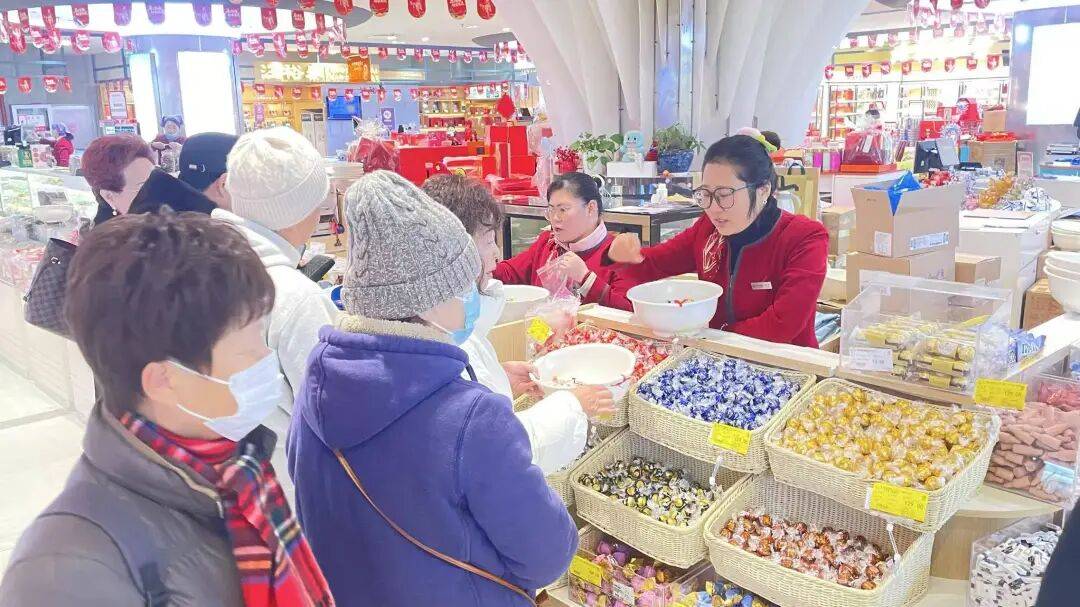 糖果糕点专区则满是甜香,大白兔奶糖等国民经典、百诺巧克力及多国风味进口巧克力齐聚,兼顾各年龄层口味;蝴蝶酥、咸淇淋、传统桃酥等糕点匠心制作,在古法风味中贴合现代口感,成为市民传递新年甜意与祝福的优选。