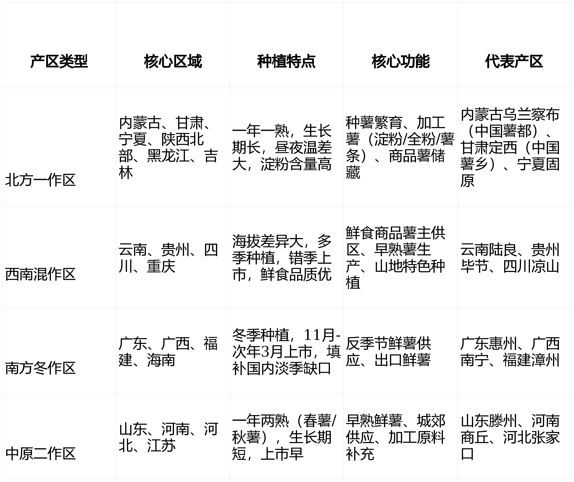 内蒙古乌兰察布:“中国薯都”,种植面积、产量居全国地级市第一,占全国6%;国家种薯、商品薯、加工薯核心基地,地理标志产品“乌兰察布马铃薯”享誉全国,配套完善冷链与加工体系,承接京津冀、全国鲜食与加工原料供应;